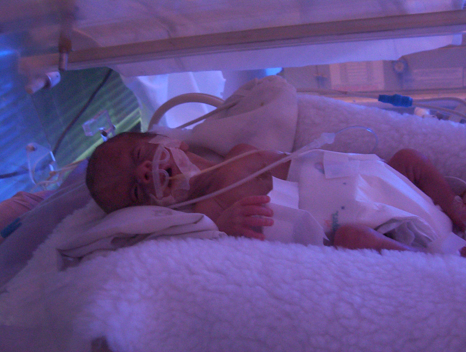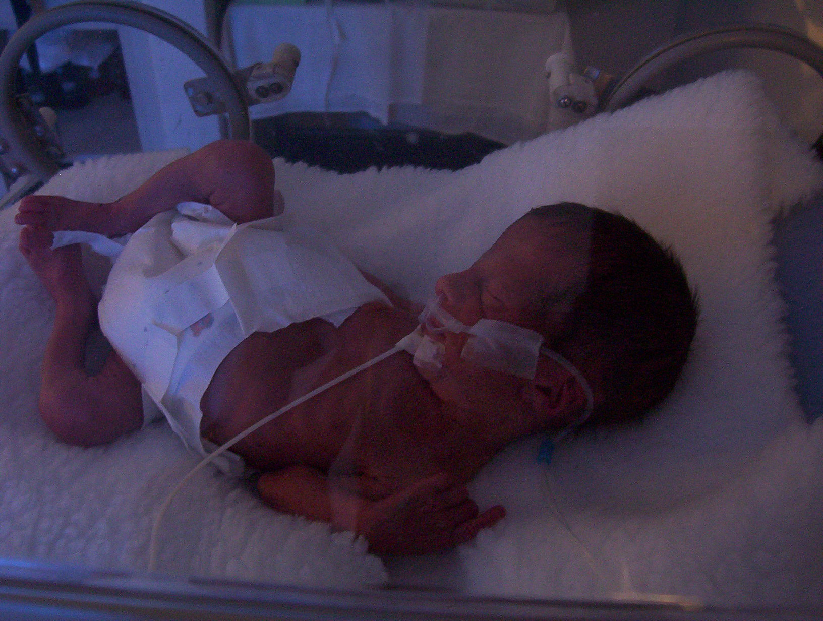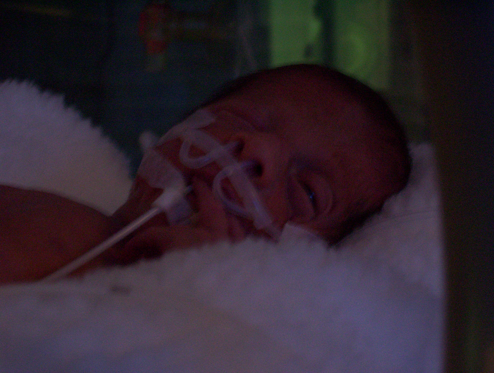 Esta noche jugué un poco de una versión modificada de peek-a-boo con Joaquín. En vez de yo aparecerme de repente y decir boo!, él no aguantaba más tener los ojos abiertos y los cerraba por un rato. Es igual de efectivo, porque cada vez que los volvía a abrir estaba yo, en vez de la sábana blanca que le tapaba la incubadora antes... pegaba un pequeño sobresalto y abría los dos ojos, para asegurarse que fuera cierto, antes de buscarme la mano (hay otras interpretaciones, como que decía "Mama! Un monstruo!" y agitaba la mano violentamente hasta que le ponía el dedo al medio. Yo, padre baboso, digo que lo primero).