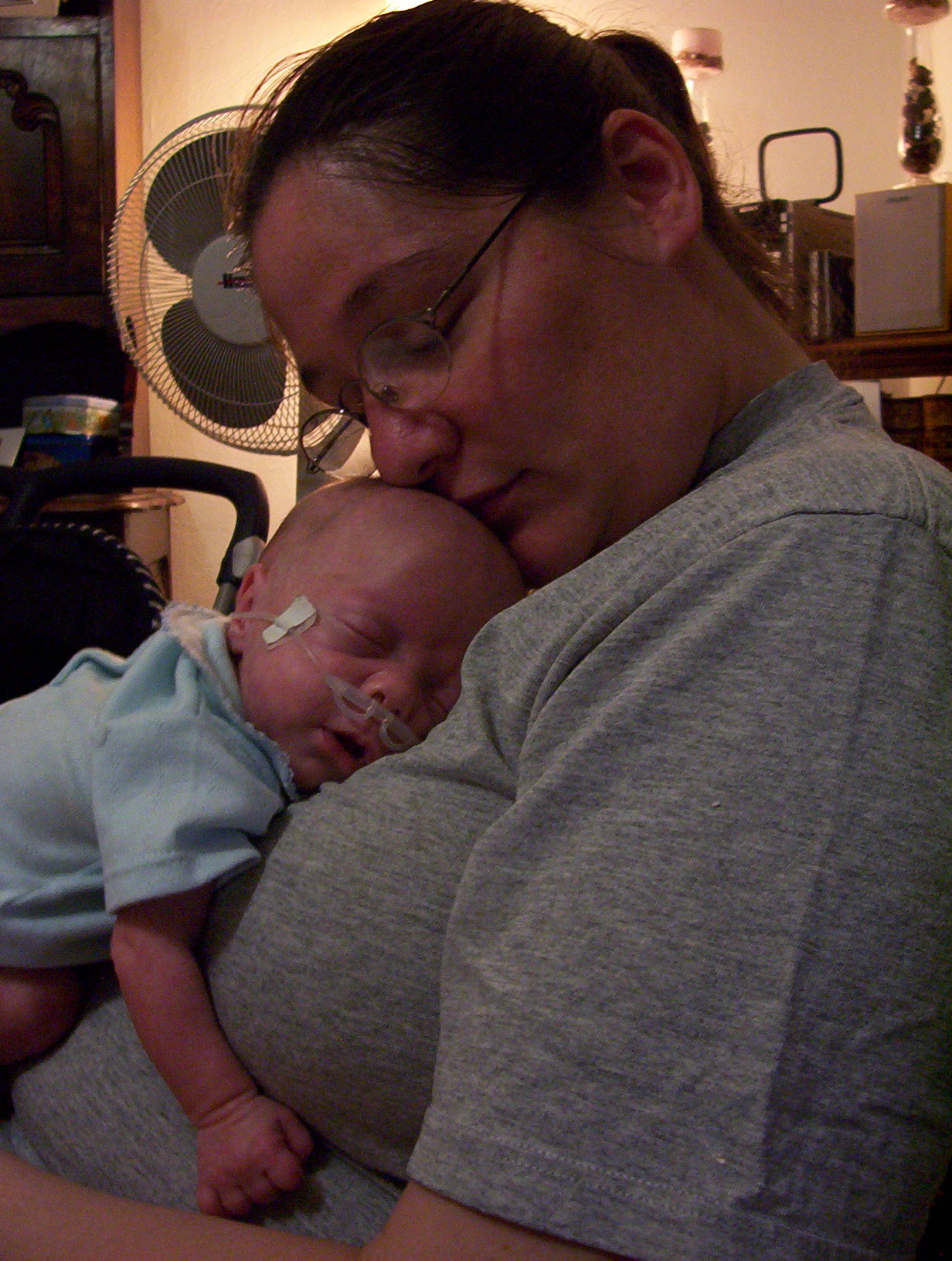 Joaco se hace el agrandado; así estuvo como dos horas (sin ayuda de oxígeno), con la saturación en 90%.