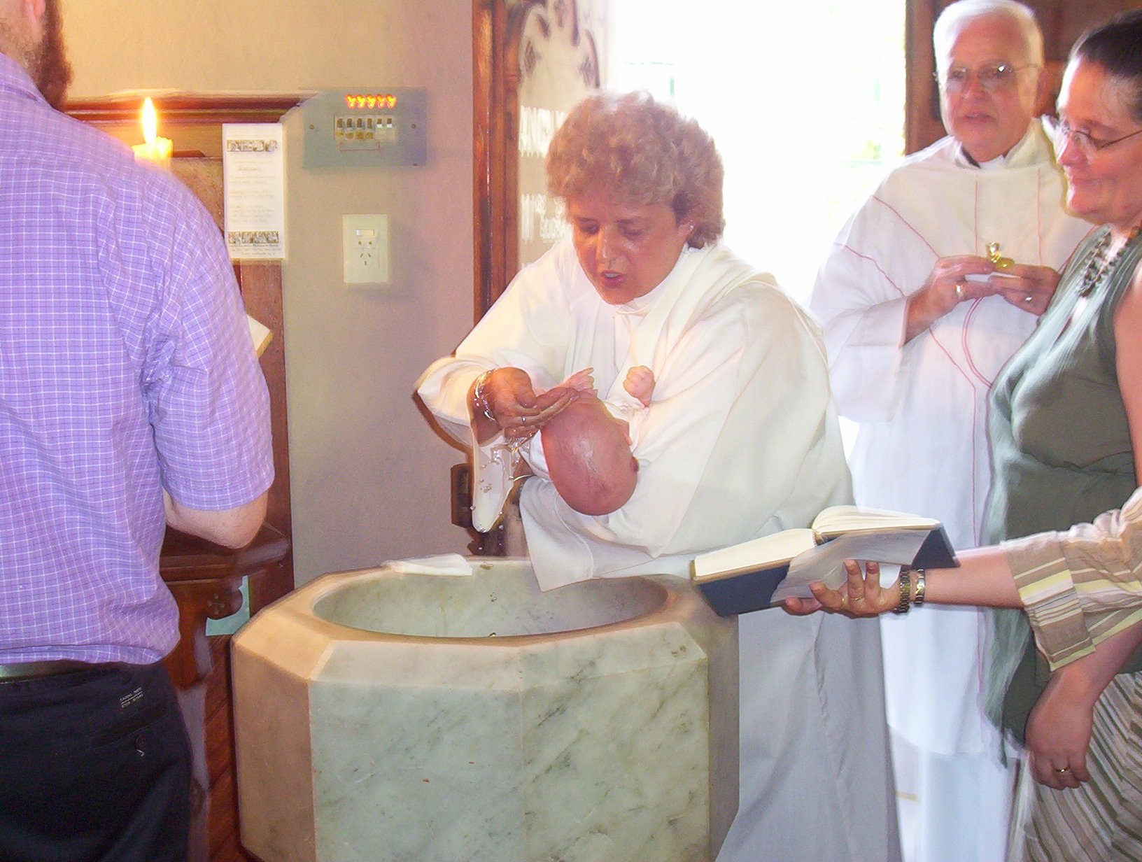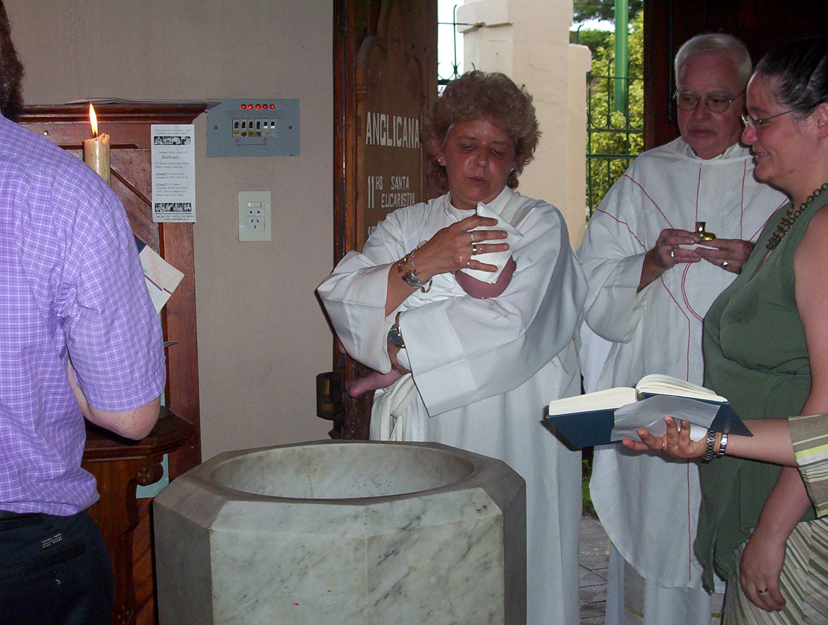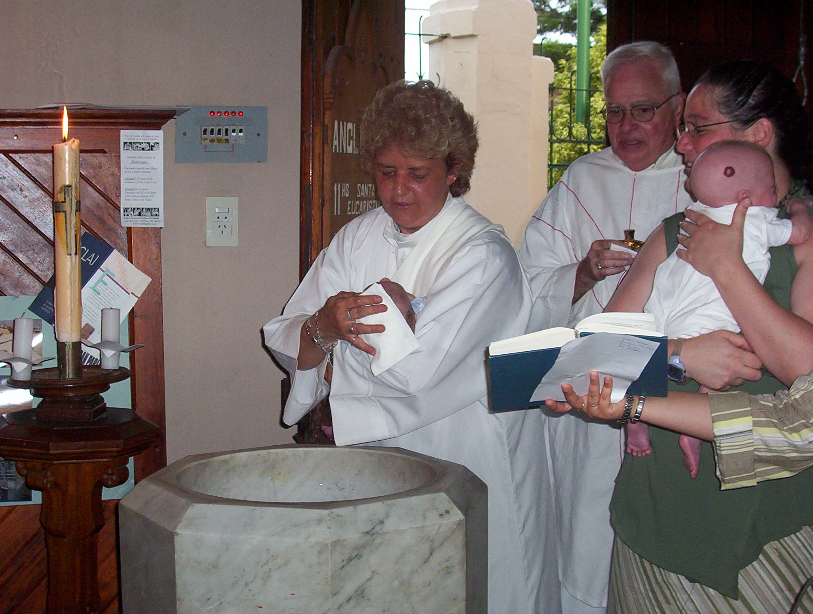 El domingo pasado fue el bautismo de los chicos, calculado para que hubieran varias personas que normalmente no están (puntualmente, Sylvia mi hermana, y Ricardo mi amigo desde siempre). Anduvo todo bárbaro gracias a otras personas (por ejemplo, las abuelas... ), porque yo estuve de cama el viernes y parte del sábado, y Lore, el sábado. Nada grave, una gastroenteritis fiera (producto del calor, y de comer cosas un poco pesadas (en mi caso, demasiadas)), pero postrante de todas maneras.